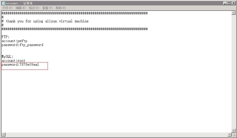 account.log文件將包含mysql和ftp的帳號信息。(這時因為ftp還沒有安裝完成,所以FTP帳號的密碼還未生成,為默認值ftp_password,不必理會。)