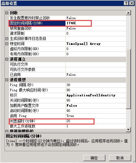 如果一個網站在20分鐘內(IIS默認為20分鐘)沒有客戶端訪問,服務器會自動釋放IIS的應用程序池,此時定時任務就會失效,如果需要IIS中的應用程序池在長時間不會被釋放需要對其參數進行調整: