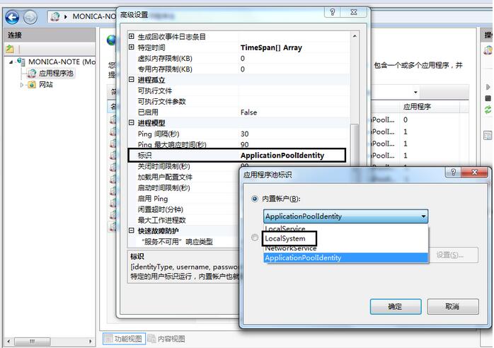 其他回答:IIS里,應用程序池,到你的網站名字,右鍵“高級設置”,點開“標識”的下拉框,選擇localsystem即可。