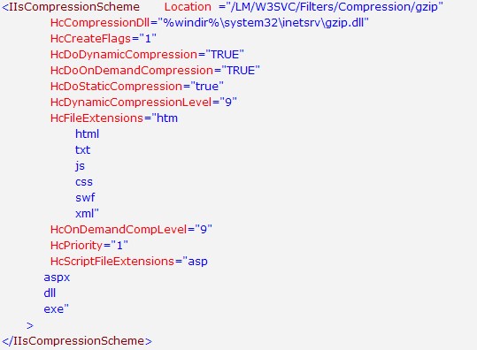 找到Location ="/LM/W3SVC/Filters/Compression/gzip用于設置gzip壓縮,
