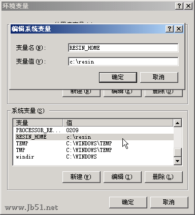 記得立即做好下面這一步,設置resin的環(huán)境變量,我總是在這里忘了,最后系統(tǒng)找不到resin在哪里,當然不成功了。