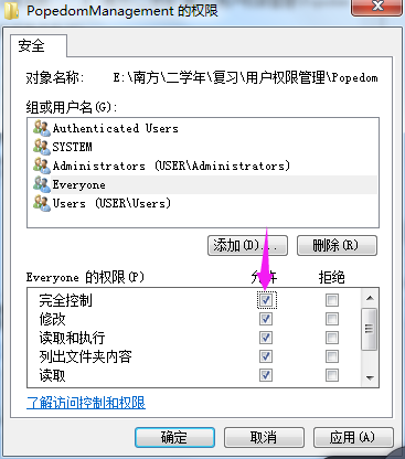 右菜單欄->編輯權限->安全->編輯->添加->權限特殊權限不用選,其他全選->應用->確定!即可