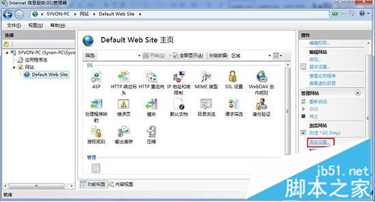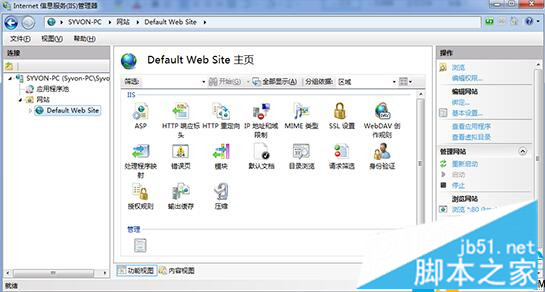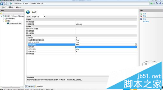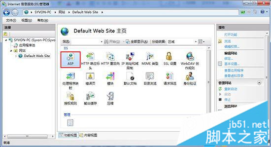 六、選中“Default Web Site”,雙擊中間的“ASP”