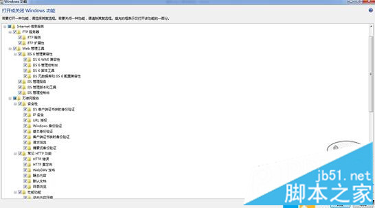 系統之家提醒您:如果你用上述步驟安裝,得到的是默認的安裝,也就是最少的功能。如果你需要額外的IIS功能,如應用程序開發功能或者Web管理工具,就要在Windows功能對話框中,保證選中這些功能的相關復選框。