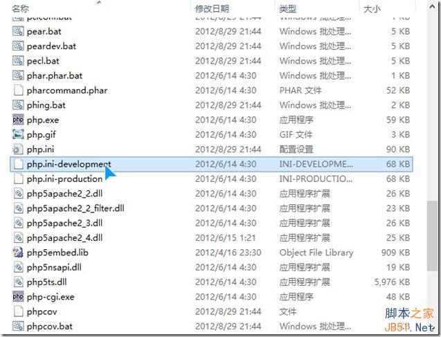 7.進入E:/php目錄,重命名文件php.ini-development改名為php.ini并復制到桌面;