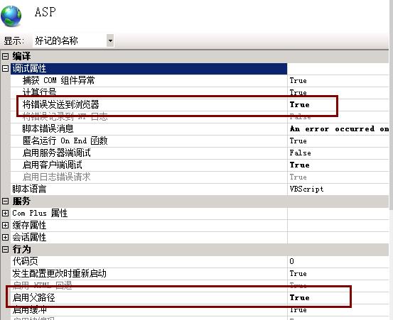 1、雙擊ASP,調試屬性,“將錯誤發送到瀏覽器”改為TRUE