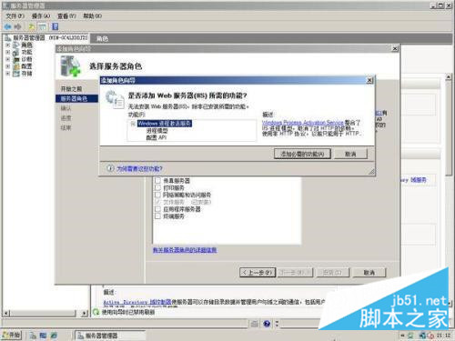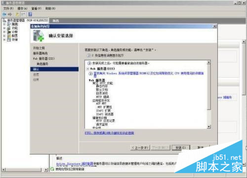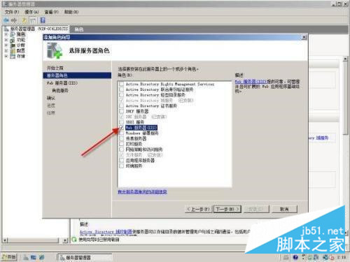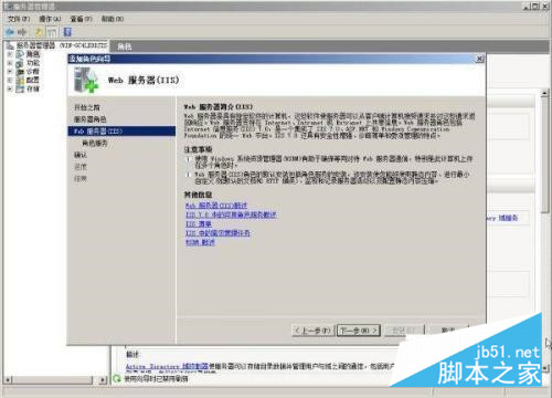 選擇安裝Web服務(wù)器(IIS)角色 選中Web服務(wù)器(IIS)