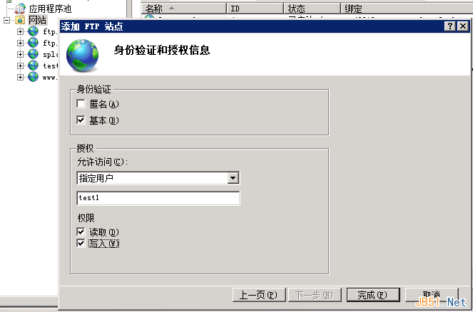除了test1外,你還可以配置test2、test3等等,實現一個用戶、一個目錄、一個ftp站點。這個跟IIS建獨立站點貌似極其相似哈!關于Windows 2008的IIS7.5上配置獨立用戶的FTP站點,洪哥就介紹這么多,希望對大家有所幫助,謝謝。