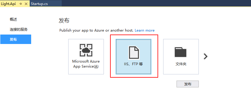 1、發(fā)布我們上一篇建好的ASP.NET Core API項目,然后選擇IIS,新建一項發(fā)布配置