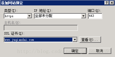 8.將類型改為HTTPS,端口改為443,然后選擇剛才導入的SSL證書,點擊“確定”,則SSL證書安裝完成。