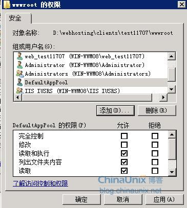 雖然看起來都是ApplicationPoolIdentity,但實(shí)際上分屬不同賬戶(一個(gè)程序池對(duì)應(yīng)一個(gè)賬戶)。 在進(jìn)行NTFS授權(quán)時(shí),可通過“IIS AppPool/應(yīng)用程序池名”進(jìn)行使用:
