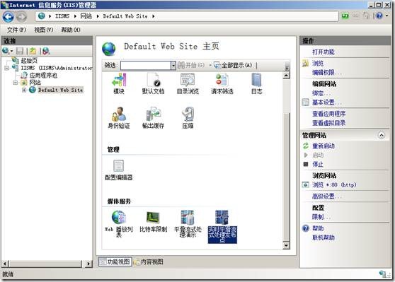 在打開的管理程序界面中選擇想要設置的站點或虛擬目錄,雙擊Live Smooth Streaming Publishing Points圖標。