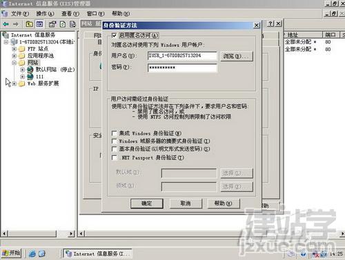 在身份驗(yàn)證方法窗口中啟用匿名訪問(wèn),這樣才能夠開啟在訪問(wèn)WWW站點(diǎn)時(shí)使用IUSER_計(jì)算機(jī)名(internet來(lái)賓帳戶)帳戶來(lái)瀏覽頁(yè)面信息。另外記得不要點(diǎn)下面的“集成Windows 身份驗(yàn)證”。(如圖10)