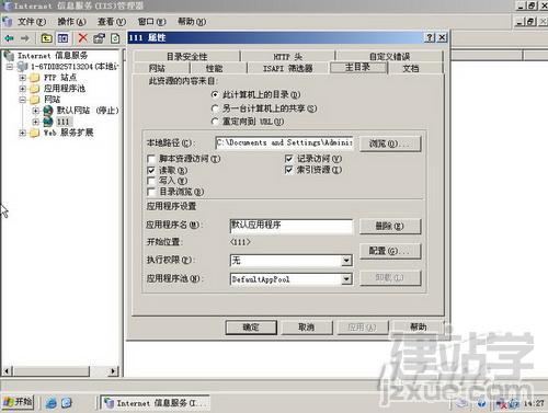 還有一點(diǎn)要注意的就是在網(wǎng)站屬性窗口中有一個(gè)“主目錄”標(biāo)簽,在該標(biāo)簽下我們可以查看發(fā)布目錄對(duì)應(yīng)的權(quán)限,記得一定要合理分配好,如果不小心給予了寫入和目錄瀏覽權(quán)限,那么你發(fā)布的站點(diǎn)很容易被攻擊,當(dāng)然這里如果沒(méi)有添加讀取權(quán)限,那么你的站點(diǎn)在別人訪問(wèn)時(shí)同樣會(huì)出現(xiàn)不具備相關(guān)權(quán)限的錯(cuò)誤提示。(如圖11)