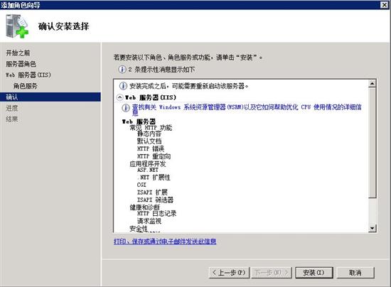 添加ASP.NET 、.NET 擴展性、CGI、ISAPI 擴展、ISAPI 篩選器,去掉 目錄瀏覽(因為大多數網站用不到。)