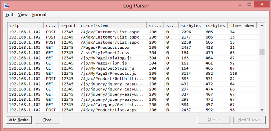 3、現(xiàn)在就可以以表格形式來(lái)閱讀IIS日志了: