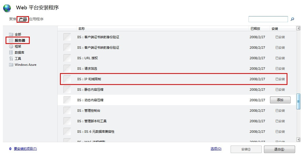 一、安裝“IP地址和域限制”功能