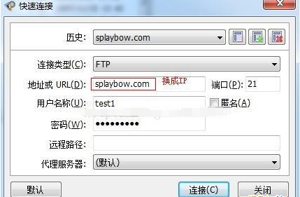 1、使用FlashFXP這樣的工具來測試一下,IP地址就是服務器的IP,端口我們剛才配置的21,用戶名和密碼就是test1用戶的賬號和密碼。是不是很簡單呢?