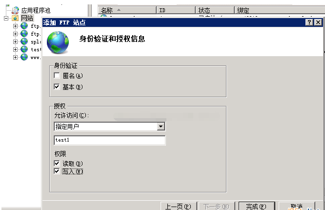 2、除了test1外,你還可以配置test2、test3等等,實現一個用戶、一個目錄、一個ftp站點。這個跟IIS建獨立站點貌似極其相似哈。