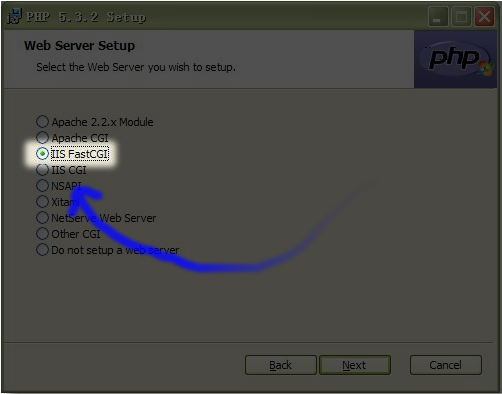 記得選中第三項(xiàng):IISFASTCGI