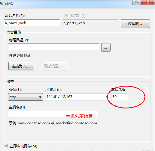 網站名稱為a_part1_web,端口號這里輸入8001,不使用默認端口80,