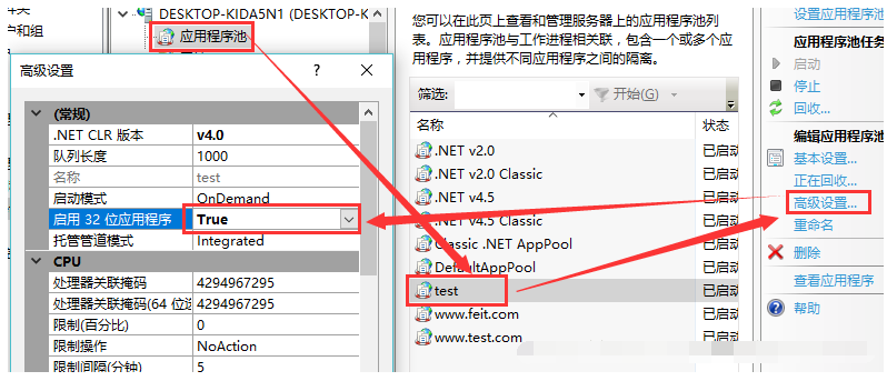 5、64位操作系統(tǒng),應(yīng)用程序池需要設(shè)置啟用32位應(yīng)用程序,access數(shù)據(jù)庫(kù)驅(qū)動(dòng)程序才能正常運(yùn)行