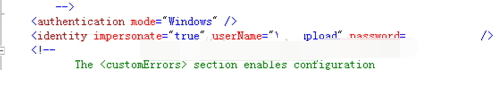 在IIS服務(wù)器的Web.config新增一條配置,用戶名為在上傳文件服務(wù)器新建帳號xxupload,密碼同登錄密碼。