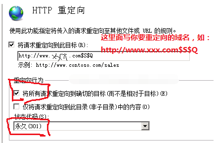 <httpRedirectenabled="true"destination="http://www.xxx.com$S$Q"exactDestination="true"httpResponseStatus="Permanent"/>