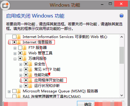 win8下開啟IIS功能支持asp、asp.net的方法