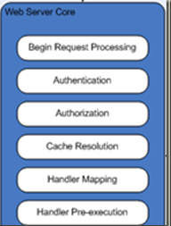 這可能是一個讓人容易迷糊的詞匯impersonate-扮演,裝扮.他是指在某個特定的時刻以一個新的身份來代替已有身份來運行應用程序.一個請求來臨時在IIS處理管道中,在authentication之前authenticateduser的上下文是未知的,這時你的應用程序以WPI的權限在運行.在authentication之后authenticateduser的上下文被建立,但依然沒有去扮演,直至請求被映射到他的handler也就是handlermapping后應用程序開始使用扮演則將默認的WPI權限替換為authenticateduser的權限來執行應用程序。