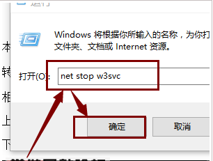 第一步:點擊自己電腦的左下角圖標,然后選擇“運行”選項,并在運行框中輸入以下二行命令,作用為停止IIS服務器運行。