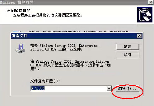 ps:安裝過程中,需要放入操作系統安裝光盤。如果沒有放入光盤,會提示要求查找某些配置文件。這時我們找到剛才解壓縮的目錄,瀏覽到特定的文件點擊確定即可。
