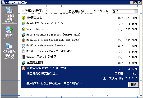 2、在彈出的“添加或刪除程序“中單擊左側的”添加或刪除windows組件“,如下圖所示: