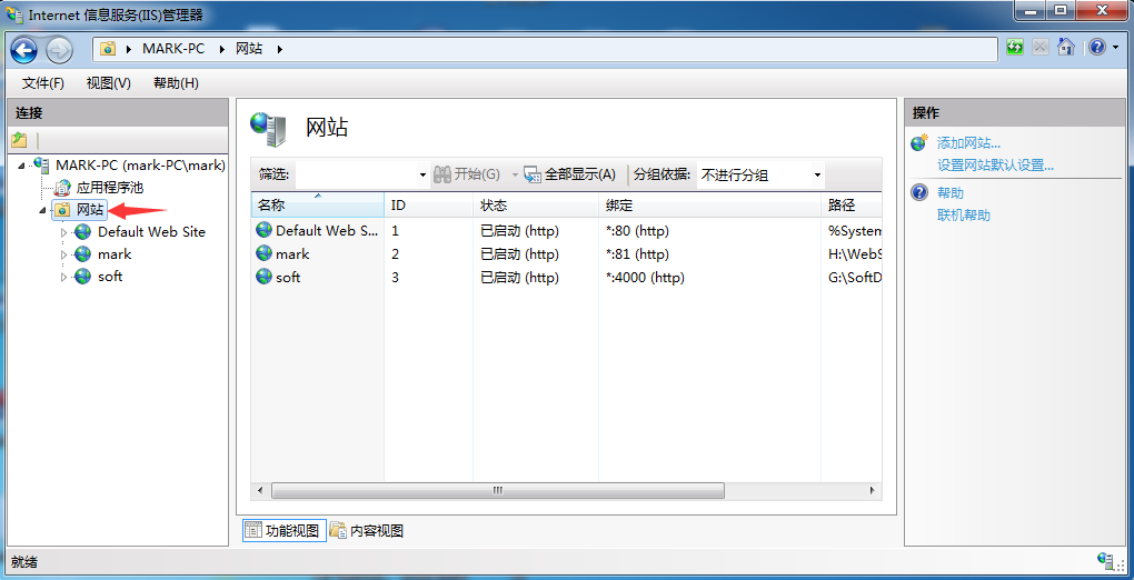 第九步:回到網站欄,選中你的目標網站,點擊”網站綁定“,出現如下窗口