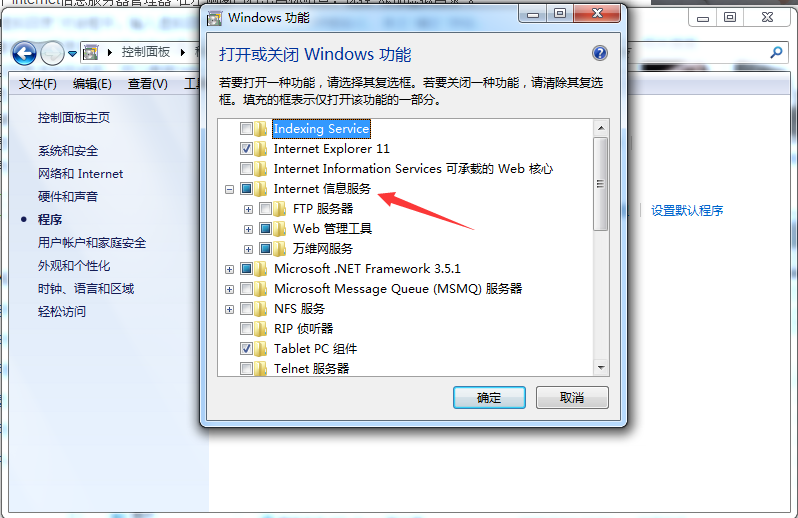 win7下iis信息服務管理器要怎么安裝?