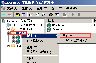 2、然后我們打開“Internet信息服務(IIS)”管理器,展開“Internet信息服務”,右鍵點擊“網站”,新建,最后點擊“網站”;
