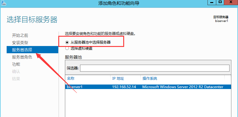 3、然后點擊“服務器選擇”,選擇“從服務器池中選擇服務器”,