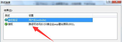 4、經過這樣的設置后,我們就已經開啟了訪問權限,現在我們重新進行測試,就顯示路徑可訪問了,如下圖所示: