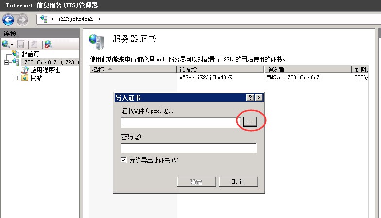 第一步: 首先上傳PFX格式證書到服務器桌面,打開IIS管理器. 選擇 【服務器證書】,導入后先不要在站點上綁定證書。