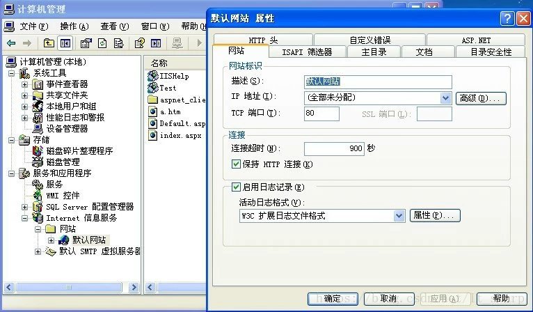 1、 我們來配置IIS:鼠標右鍵我的電腦–管理–展開【服務和應用程序】–展開【Internet信息服務】–展開【網站】–鼠標右鍵【默認網站】–選擇屬性