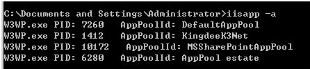 2、輸入命令iisapp–a,如下看到連接池對應的PID,則找到是因appPoolestate站導致的;