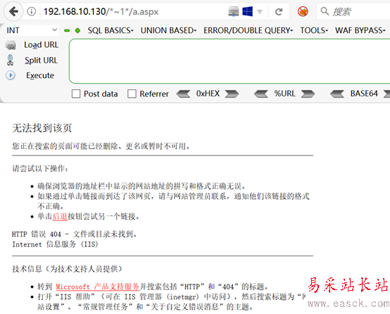 2、使用payload驗(yàn)證目標(biāo)是否存在IIS短文件名漏洞,下圖顯示的404,說明目標(biāo)存在該短文件名