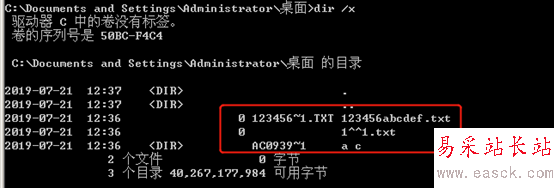 在Windows下查看對(duì)應(yīng)的短文件名,可以使用命令dir /x