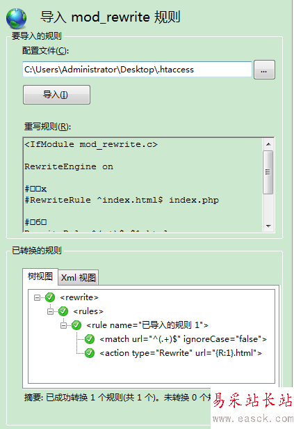 如果你有.htaccess現成文件,那么可以通過導入規則直接使用!