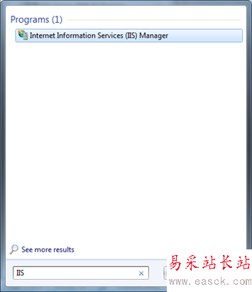 在開始 ->查找框中輸入IIS,找到Internet Information Services (IIS) Manager。