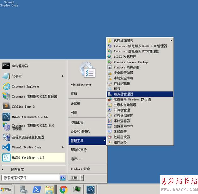 點(diǎn)擊開始=》管理工具=》服務(wù)器管理器,打開“服務(wù)器管理器“。