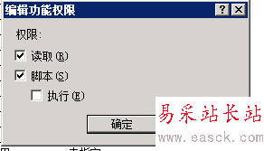 選中“腳本”可啟用需要對虛擬目錄具有腳本權限的處理程序,清除“腳本”可禁用需要對虛擬目錄具有腳本權限的處理程序。