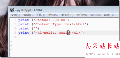 至此部署完成,我們來測試一下效果如何,在D:/Python/test下建立index.py: