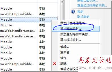 2. 進入"處理程序映射"后, 右鍵選擇"添加腳本映射".