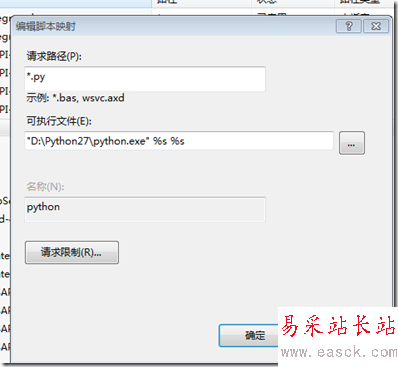 4.IIS7.5->處理程序映射->添加腳本映射->請求路徑:*.py